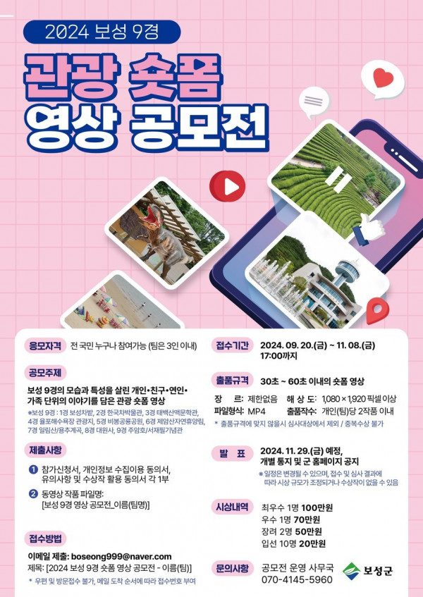 2024년 보성 9경 관광 숏폼 영상 공모전