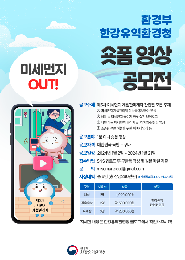 환경부 한강유역환경청 <미세먼지 OUT!> 숏폼 영상 공모전