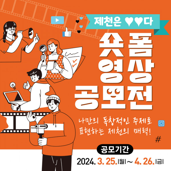 ■ 공모내용 나만의 독창적인 주제로 표현하는 제천의 매력 ■ 참가자격 국민 누구나(개인 또는 팀/1인·1팀 1작품) ■ 출품수 유튜브(쇼츠), 인스타그램(릴스) (1개 매체 응모 가능) ■ 참가방법 - <제천은 ○○(이)다> 형식으로 나만의 독창적인 주제 정하기 ※ 주제선정 시 참고사항 : 글자 수 제한 없음 (제천은 사랑이다, 제천은 맛있다 등) ※ 영상 첫 화면에 <제천은 ○○다> 주제 텍스트 제시 필수 - 콘텐츠를 출품자 SNS 계정에 업로드(2024년 이후 게시분부터 참여 가능) ( #제천시숏폼영상공모전 해시태그 기입 필수 ) - 공모전 신청서 이메일 제출( kh1000j@korea.kr ) - 제출항목 ① 작품 원본파일 1개 ② 공모전 신청서(붙임1) 1부 - 작성한 한글파일 원본 제출 ③ 개인정보 수집이용 동의서(붙임2) 1부 - 서명한 서류를 스캔․사진 등 파일로 제출 ■ 작품규격 - 60초 내외 숏폼 영상 - 해상도 : FHD 1080*1920(콘텐츠에 따라 가로형식 가능) - 파일형식 : MP4 등 ■ 시상내역 최우수상 1점 : 200만원 우수상 2점 : 각 100만원 장려상 3점 : 각 60만원 참가상 30점 : 각 20만원 ■ 결과발표 2024. 5. 8. 예정 ■ 유의사항 - 출품작은 초상권과 저작권(이미지, 영상, 음원, 서체 등) 등 일체의 법적 문제가 없어야 한다. 법적 분쟁이 발생하는 경우 심사대상에서 제외되며, 입상 후 이러한 사유로 발생하는 문제에 대한 민‧형사상 법적 책임은 출품자가 진다. - 출품작은 직접 제작한 순수 창작물이어야 하고, 타 공모전 수상 작품, 타인작품, 유사작품, 모방작품 등인 경우 심사 대상에서 제외되며, 입상 후 이러한 사실이 밝혀졌을 때는 수상을 취소하고 상금을 회수하며 상기 항목 해당여부는 주최측의 해석에 따른다. - 수상작품의 저작권은 출품자에게 있고, 제천시는 공익적 목적으로 입상작을 복제 및 전송할 수 있으며 입상자와 별도의 합의를 통해 2차 저작물을 작성할 수 있다. - 응모작의 작품수준에 따라 시상내역이 변동될 수 있다. - 상금에 대한 제세공과금은 수상자가 부담한다. - 공모전 일정은 주최측 사정에 의해 변경될 수 있다. - 심사과정, 심사내용 등은 공개하지 않으며 결과에 대해 이의를 제기할 수 없다. - 작품 제출 후, 수정 및 재접수는 할 수 없다. 다만 제출서류 등이 미흡할 경우 주최 측이 보완을 요구할 수 있다. - 기타 공고문에 명시되지 않은 내용에 대해서는 제천시의 해석에 따른다. ※ 본 공모전 신청서를 제출한 자는 상기 유의사항에 동의하는 것으로 간주함 |